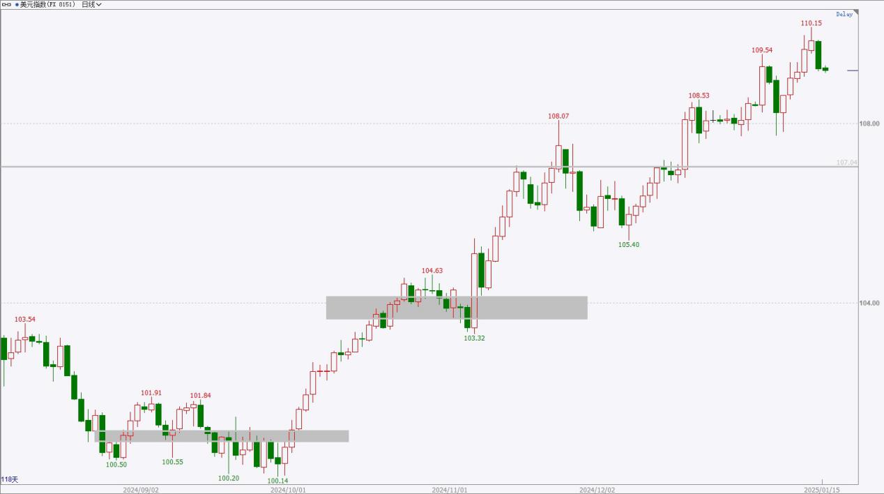 12月美联储会议,再度降息25BP,劳动力市场保持稳健,整体经济表现强劲,将通胀目标推迟至2027年,降息放缓预期,利率政策趋于谨慎,点阵图显示明年将有两次降息。12月非农数据,新增就业人数大幅增加,超出预期,失业率小幅回落至4.1%,劳动力市场表现强劲。11月核心PCE物价指数和前值持平;12月ISM制造业PMI值小幅升高。关注周三CPI数据。