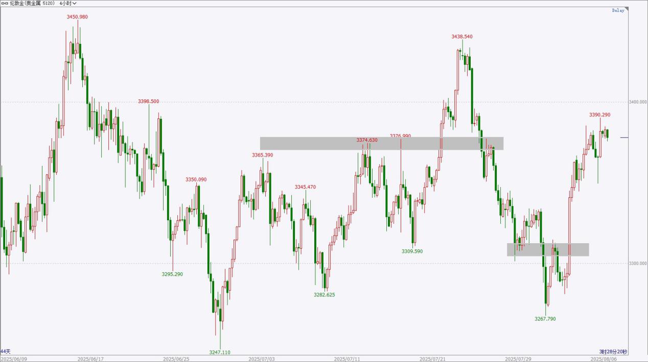 黃金價格近期反彈行情,日線連續小幅上漲,小周期震盪上行,當前仍處於壓力區域,短期搏弈激烈,要警惕可能存在拋壓,如有多單逢高及時獲利,關注小周期K線信號,可能有轉弱風險。大周期來看,日線高位震盪,價格來回反復。上方壓力位3380-3400附近,下方支撐位3300-3320附近。