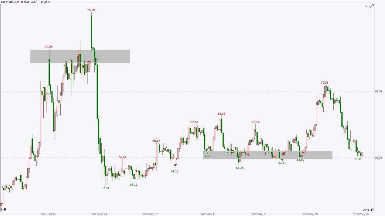 美原油近期連續回調,小周期表現較弱,當前處於重要支撐區域,跌速放緩跡象,短期或出現震盪行情,關注企穩信號,屆時可以嘗試低多機會,如果明顯跌破該結構,則行情轉弱。整體來看,原油支撐區域震盪調整,價格持續測試支撐區域,關注大級別企穩信號。上方壓力區域72-73附近,下方支撐區域65-66附近。